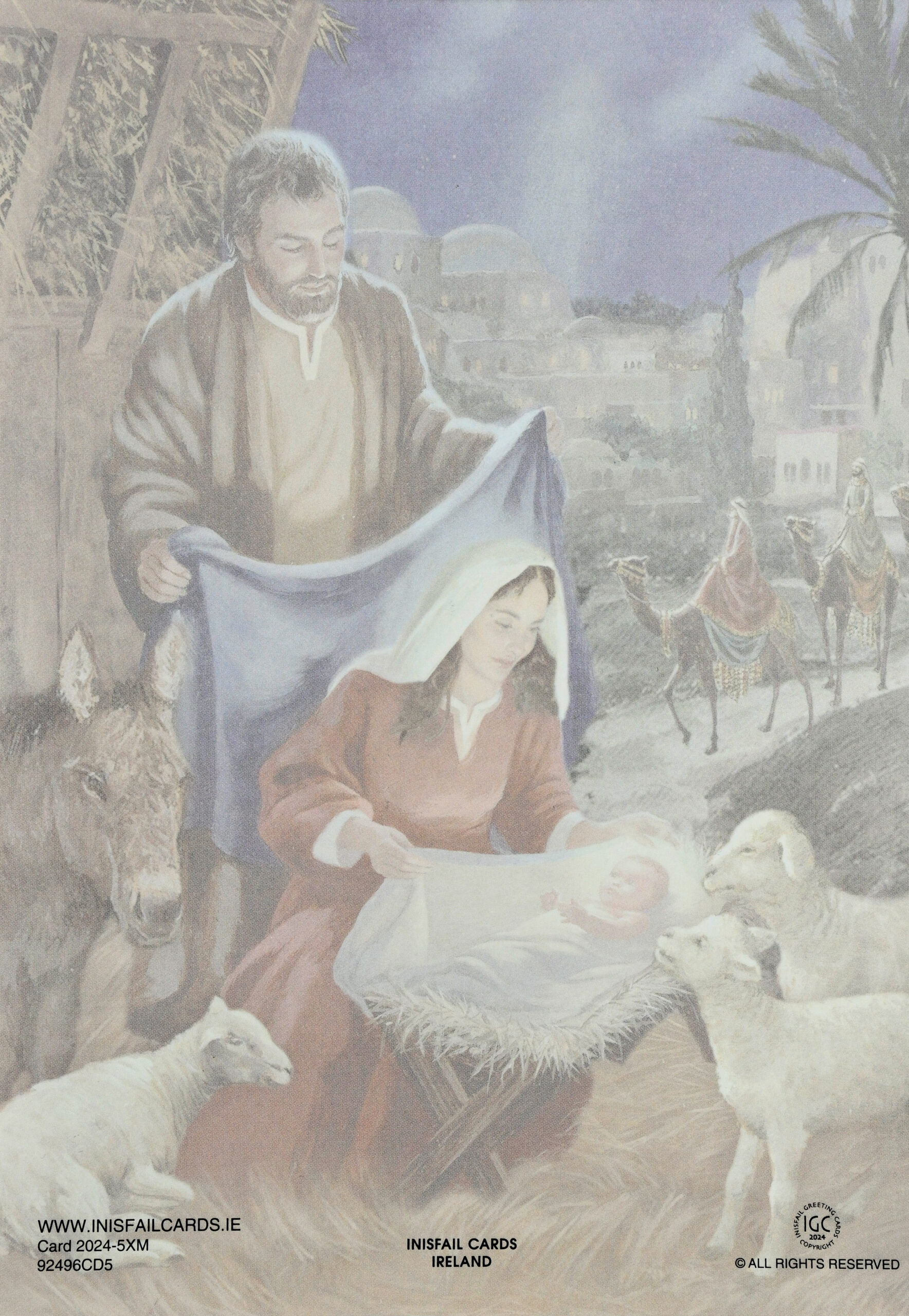 Depicting Jesus’s birth in Bethlehem with Mary, Joseph, and the three kings, along with the words: